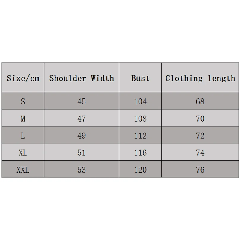 size_info: {"sizeInfoList":[{"length":{"cm":"S","inch":"S"},"size":"S","vid":-30},{"length":{"cm":"M","inch":"M"},"size":"M","vid":-31},{"length":{"cm":"L","inch":"L"},"size":"L","vid":-32},{"length":{"cm":"XL","inch":"XL"},"size":"XL","vid":-33},{"length":{"cm":"XXL","inch":"XXL"},"size":"XXL","vid":-34}]}